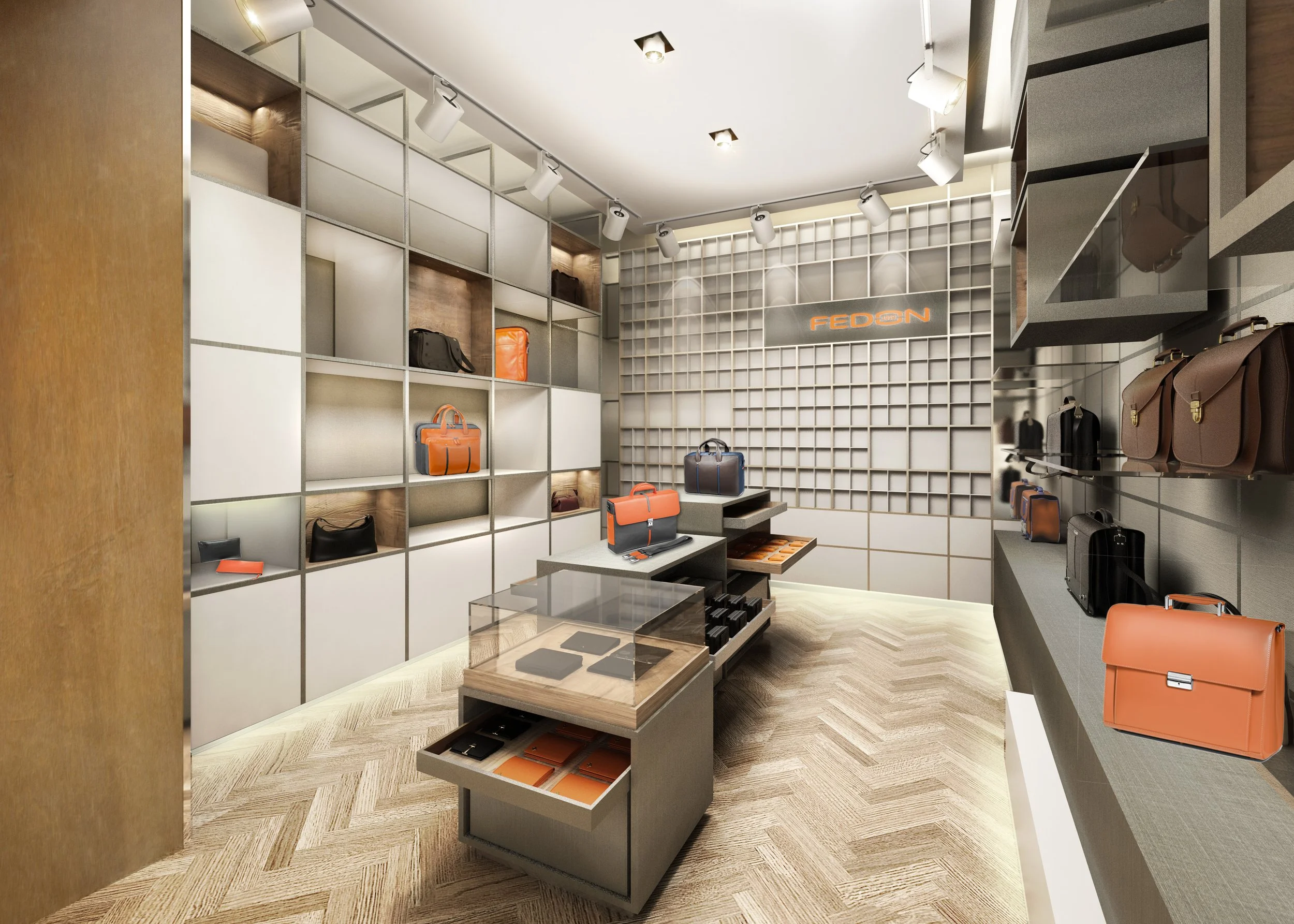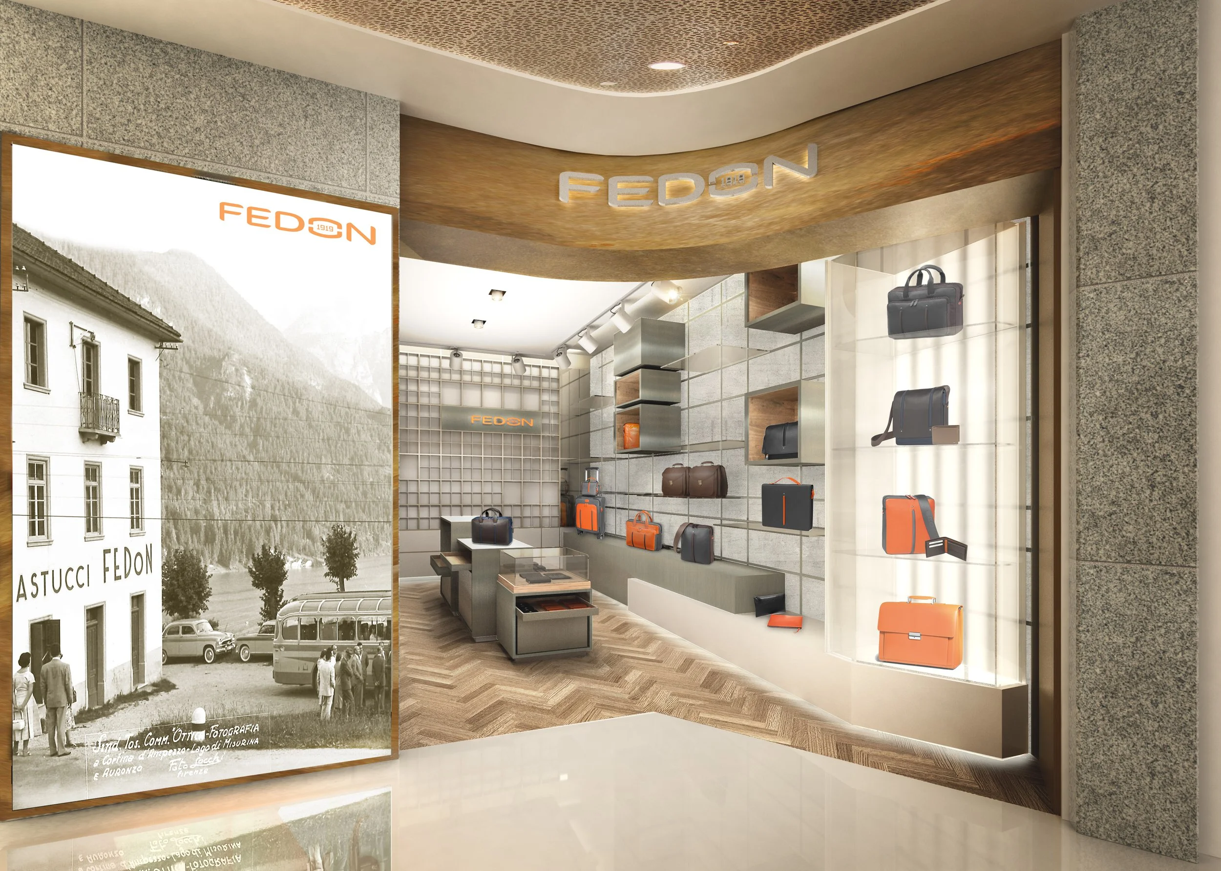 The concept we created for Fedon was inspired by the heritage of the Italian “La Bottega” (studio of a master artist). Striking the contrast between industrial metal and warm, parquet wooden flooring, we recreated the traditional workspace where the stories of exquisite and timeless craftsmanship come alive.