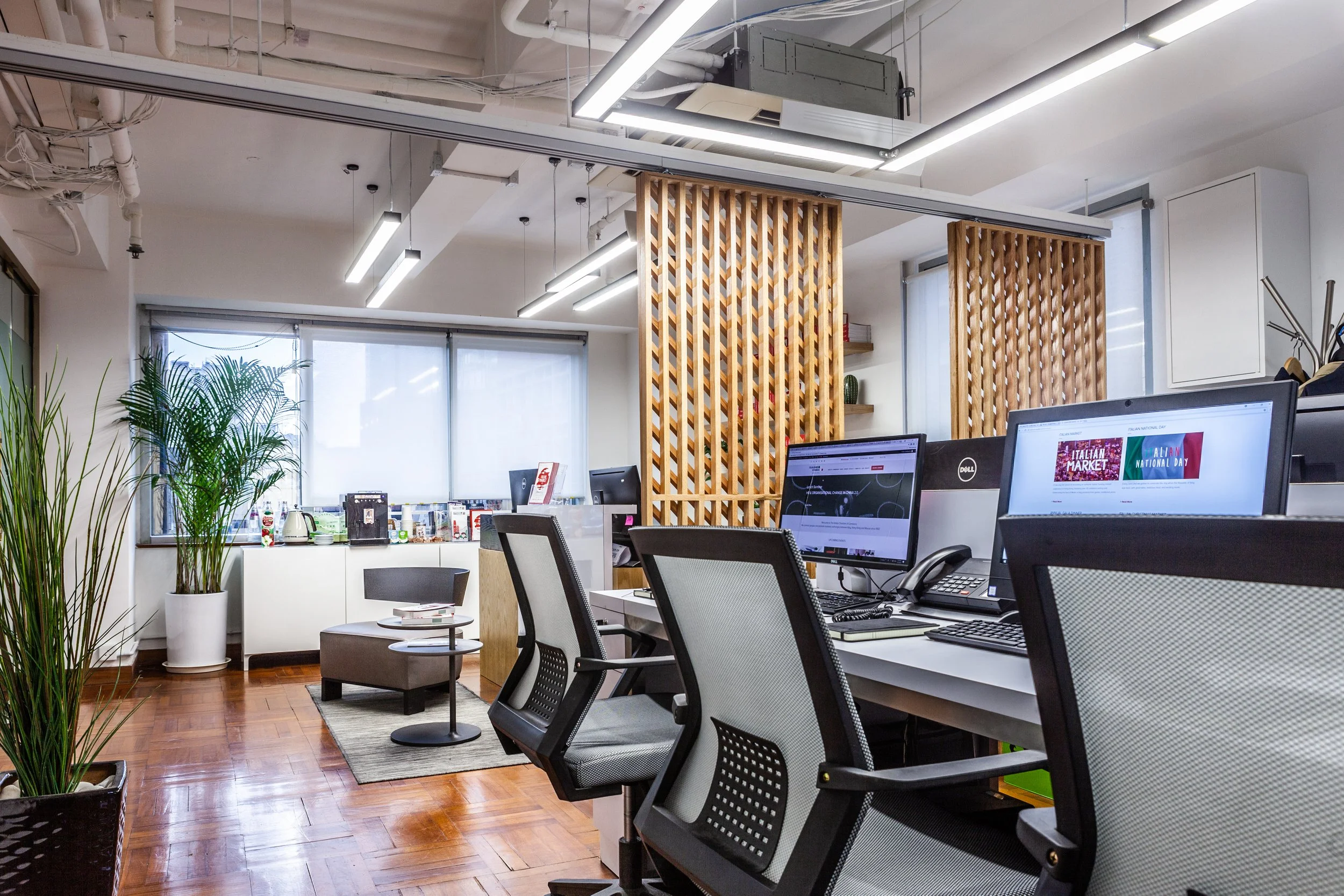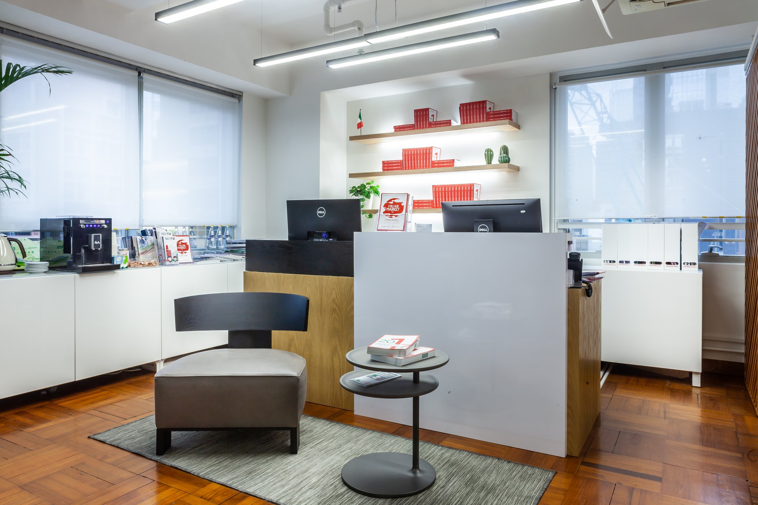 As simple as it is elegant, the open layout of The Italian Chamber of Commerce office in Hong Kong fosters a warm and modern atmosphere for meetings and business moments.